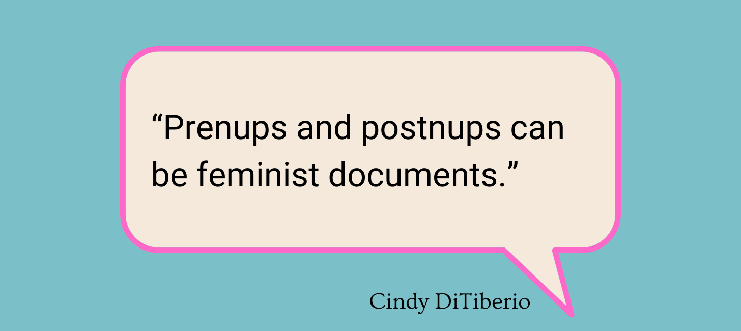Prenups and postnups can be feminist documents. They can outline how to acknowledge unpaid labor. I partnered with Eve Rodsky, the Fair Play Policy Institute, and Aaron Thomas, the Prenup Guy, on “The Fair Play Guide to Prenups and Postnups,” which outlines other components you might want to include in the contract.