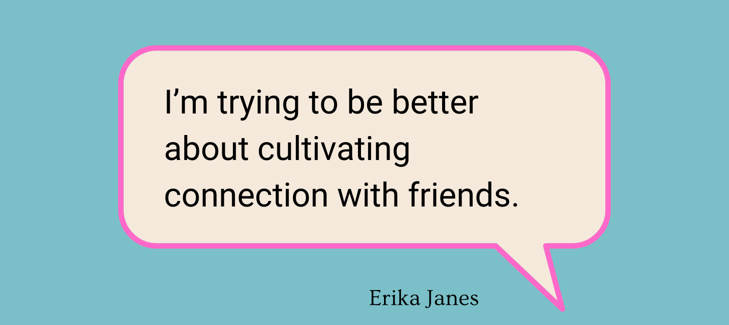 I’m also trying to be better about cultivating connection with friends, whether it’s an impromptu wine night with some neighborhood mom friends or actually making it to my longstanding monthly book club meetings (and, um, reading the book—because that’s another thing that I love but have let fall by the wayside lately!).
