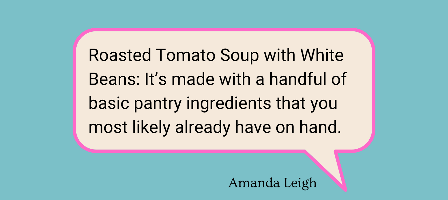 To make it, all you do is roughly chop an onion and some garlic and open a can of whole peeled tomatoes. Throw it all in a baking dish, douse it liberally with olive oil, and season with salt before tucking it in the oven to roast down into intense, sticky deliciousness. Then, a quick blend, stir through some cooked white beans (canned is just fine), and dinner’s ready. It does take time for the tomatoes to roast down and concentrate their flavor, but it’s all hands-off time.