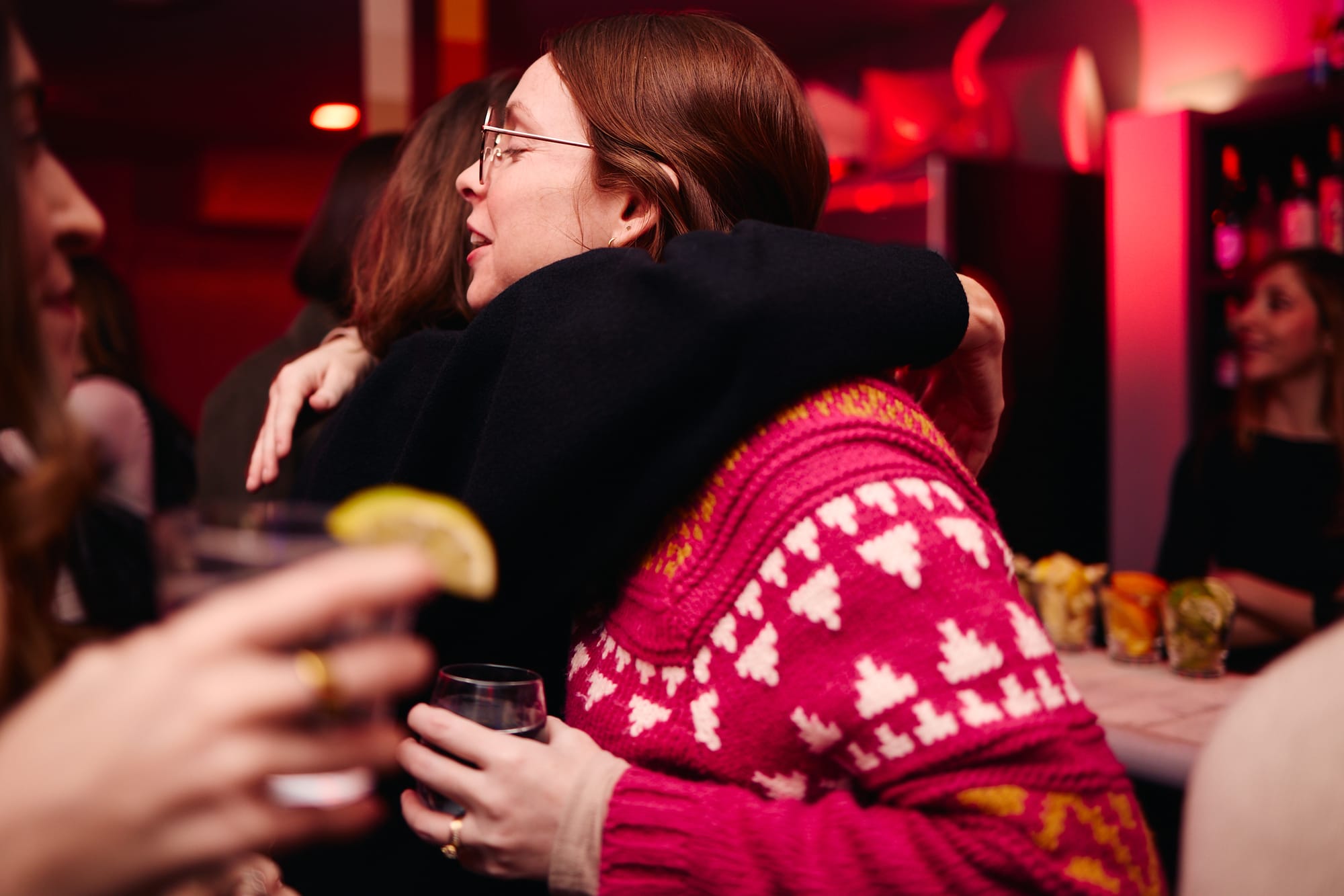 I agonized over where to host the event. Finding the right venue can be tough, especially in NYC where everything is so expensive. I wanted it to be cool but comfortable, spacious but still cozy, and not too trendy. I got so lucky when I found Beverly’s, a very cool, woman-owned art bar in Chinatown. The vibe was perfect right down to the color palette. Plus, it turns out the owner, Leah Dixon, and I both grew up in Cincinnati, and our moms share a mutual friend. It seemed like kismet that we were connected for this party.